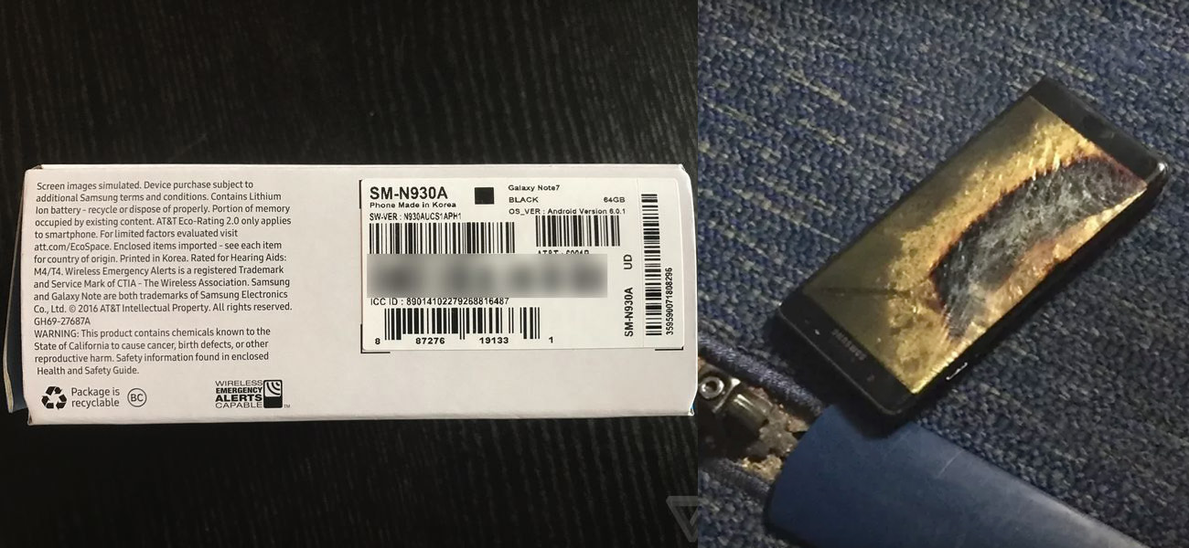 The Verge got in touch with the Note 7 owner, Brian Green, who confirmed that the device was a replacement unit from his local AT&T store on September 21st. He said the device had a green battery icon and, as proof it was a replacement, the box it came in apparently even showed the black box indicator that distinguishes a recalled Note 7 from a new one.