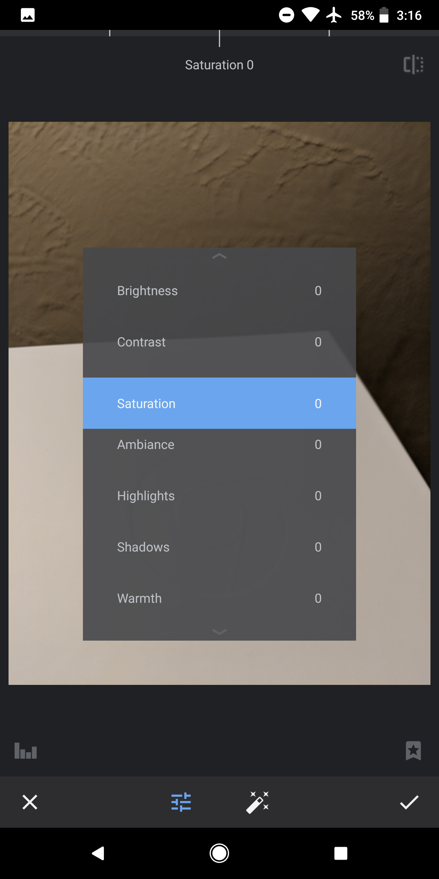 Snapseed’s last major update in September 2017 completely redesigned the app with a bottom bar that made tools easier to access. Additionally, it switched from a predominately dark theme to a light one. The image editing background adopted the brighter look, as did various menu items.