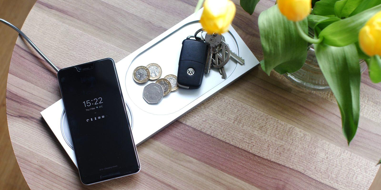 At the side of that ultra-cool charger is an accessory tray for assorted bits and pieces. I use it for my keys and random things I find in my pocket. On the whole, this is most definitely the most decadent charger I’ve ever had the pleasure of using. It feels more like an extension of your interior design in that regard and one that if you aren’t looking for a basic option would never ever consider.