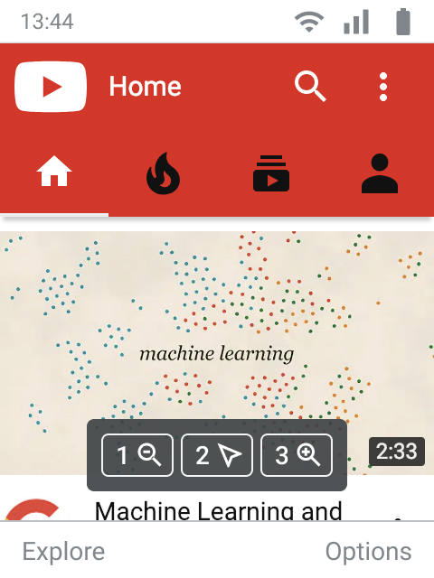 With “Explore” and “Options” in the bottom-left and bottom-right, and three buttons labeled “1”, “2”, and “3”, this UI seems purpose-built for modern feature phones from the likes of Nokia.