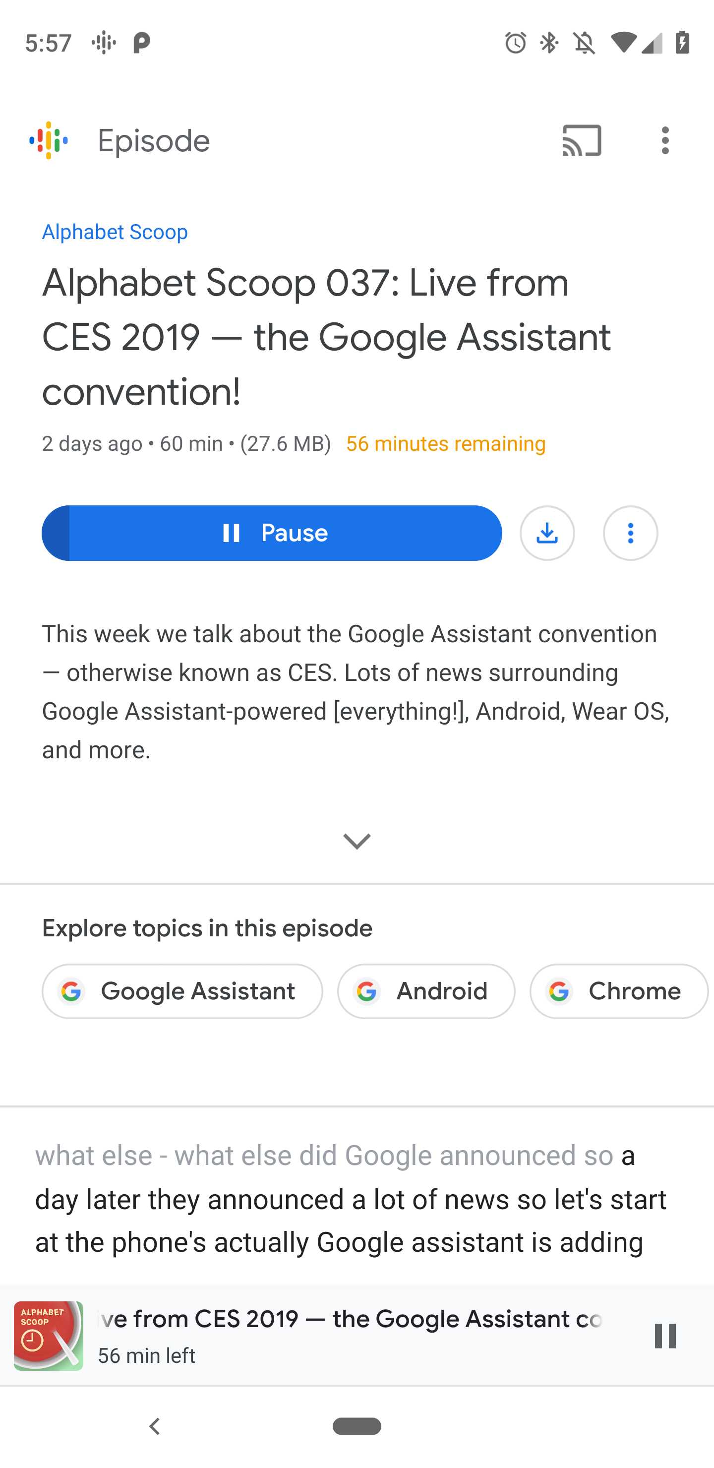 Transcription can also allow for timestamps and indexing, with creators no longer having to manually add chapters or being able to jump to an exact section from a search result. Using Text-to-Speech, Google could translate episodes and make them globally available. The Android app is already working on the ability to let users read a podcast as they listen, which is useful in noisy environments.