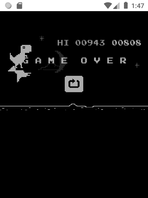 The Dino Runner Easter egg has long been accessible on all Chrome devices at the web address chrome://dino or any time your device is offline, but this marks the first time the game has been available without showing “No Internet” first. The new start screen for the game invites you to press Up on the d-pad to begin.