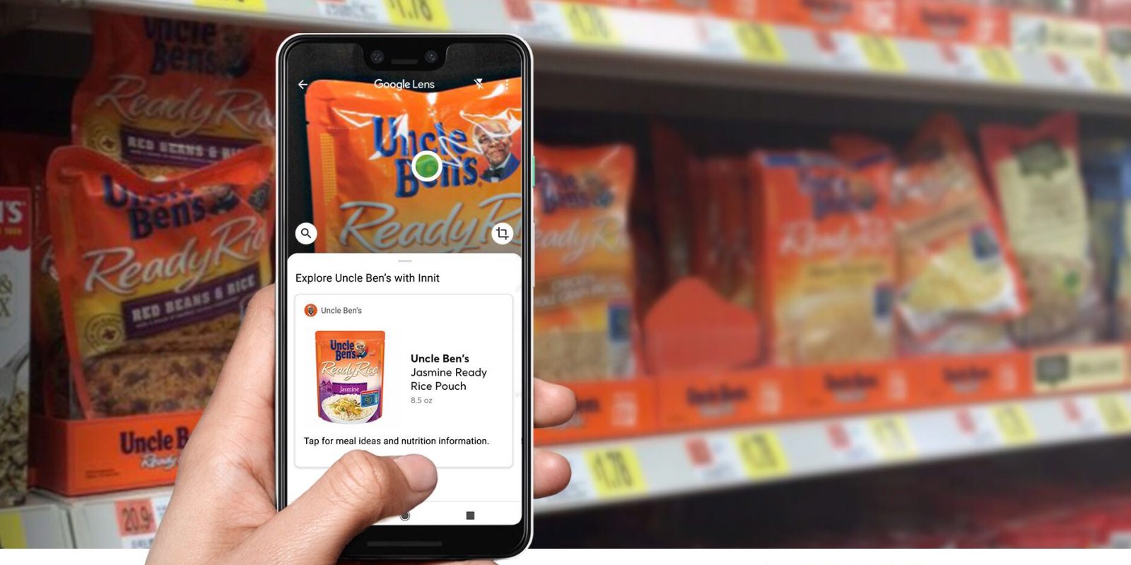 Starting today, pointing Google Lens at products from Uncle Ben’s will offer a card with recipes, videos, ingredient lists, and nutritional advice. Mars Food worked with Innit for this digital experience.
