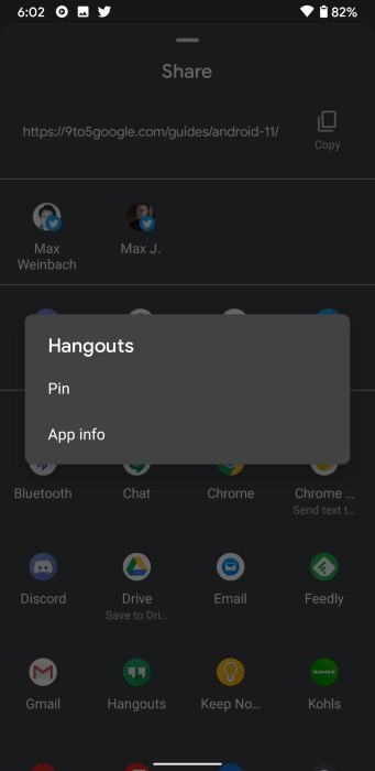 You can now pin up to 4 apps to the share menu
