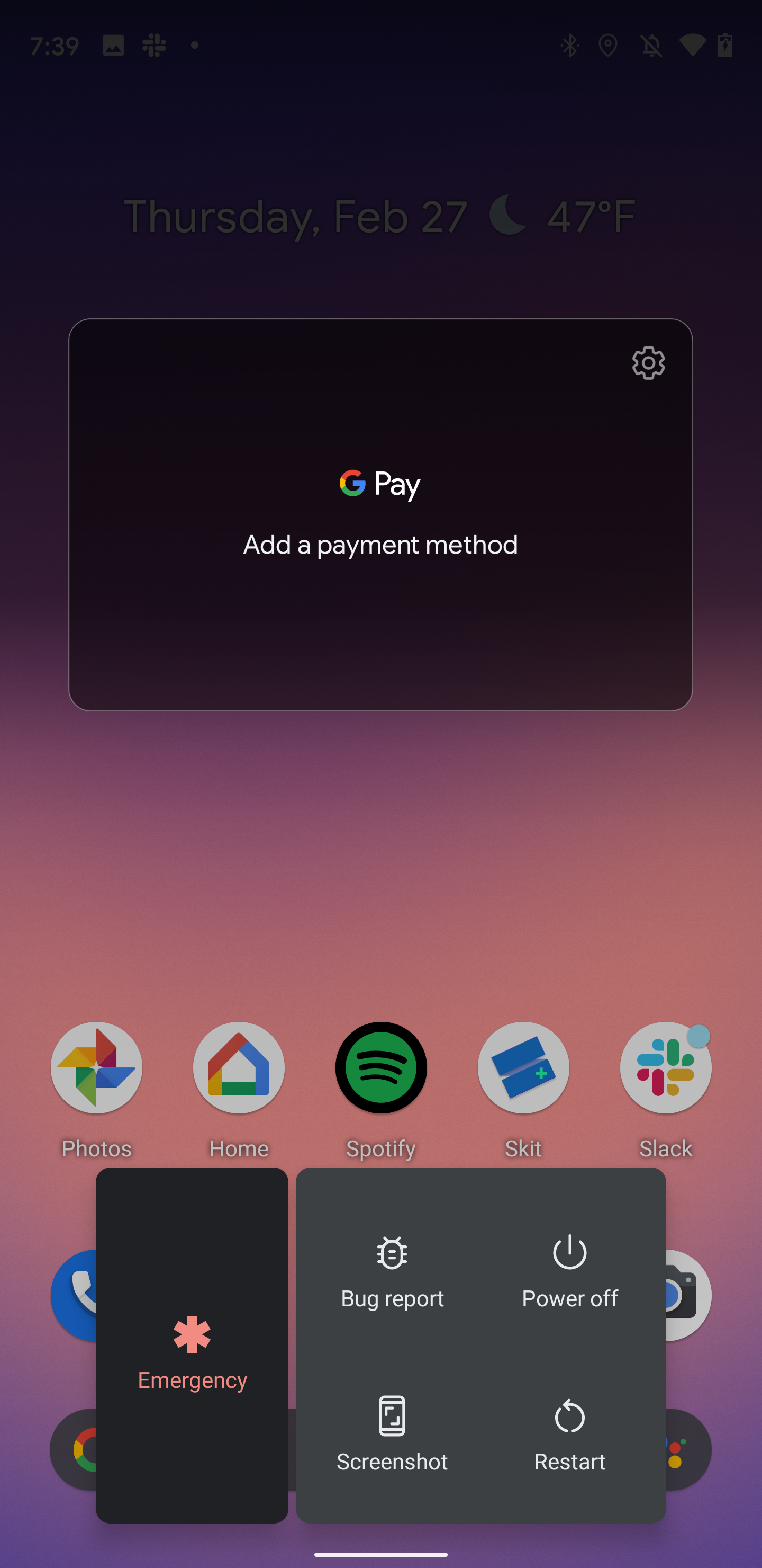 As a result of the top of the screen now being occupied, Google has moved Emergency, Screenshot, Restart, and Power off to the bottom of the screen. The tray adapts if you have Lockdown and Bug Report shortcuts. Those that find this new placement harder to reach can disable it by searching for “Cards & Passes” in settings.