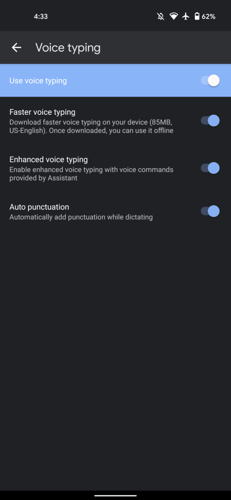 This new option coincides with last year’s “faster voice typing,” which downloads an offline model to your device and works in real-time.