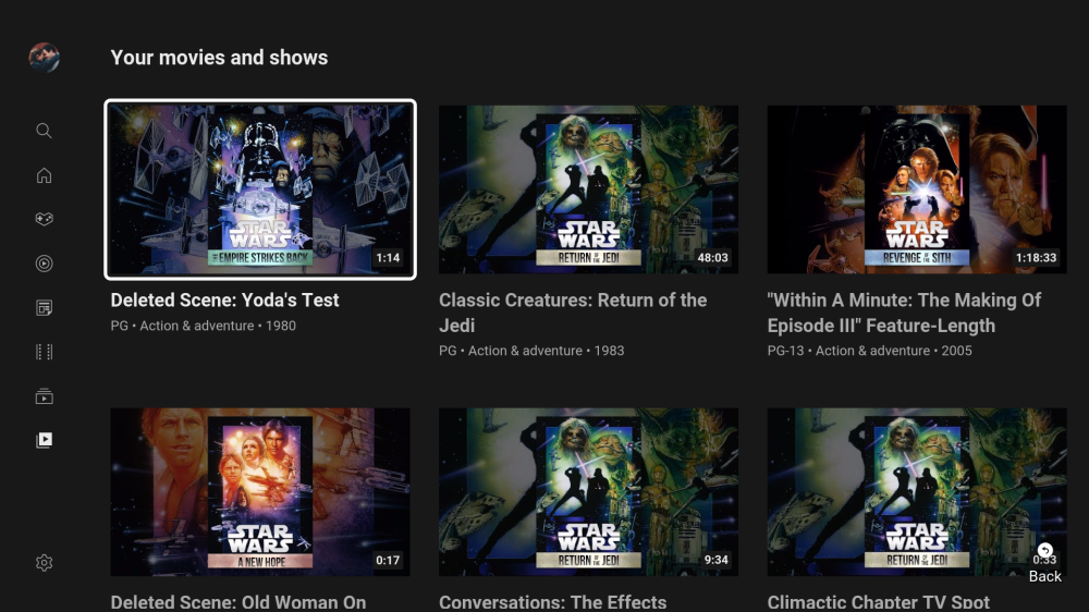 YouTube’s implementation of purchased movies and TV shows is something that has always felt shoehorned into the app, and never something meant to be the central focus. To access purchased movies on the TV app, for instance, you have to go to the Library section, then “Your movies and shows.” It’s quite literally on the lowest portion of the app, and it’s not easy to find either. I’d argue that the average user has no idea this functionality even exists. There’s no search or sensible organization here either. Just a list of movies and shows you’ve purchased in chronological order. Making matters worse, any additional content such as deleted scenes are just thrown into that list.