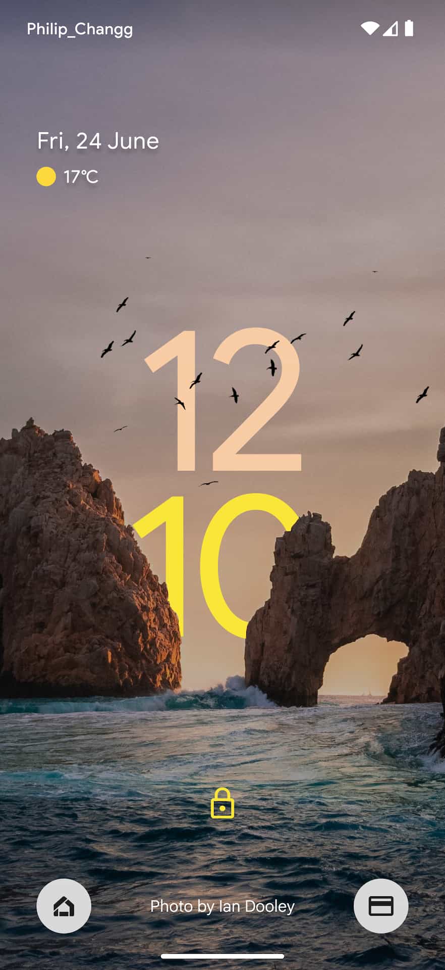 Designer Philip Chang (Twitter + Instagram) took inspiration from iOS 16 to imagine what the Android lockscreen could look like in the future. Namely, depth is applied so that the clock also adapts to what’s in the actual background image. In the example seen above, “10” is displayed behind the rock formations and the seagulls are clearly layered above the “12.” Also note how the hours and minutes are using different colors.