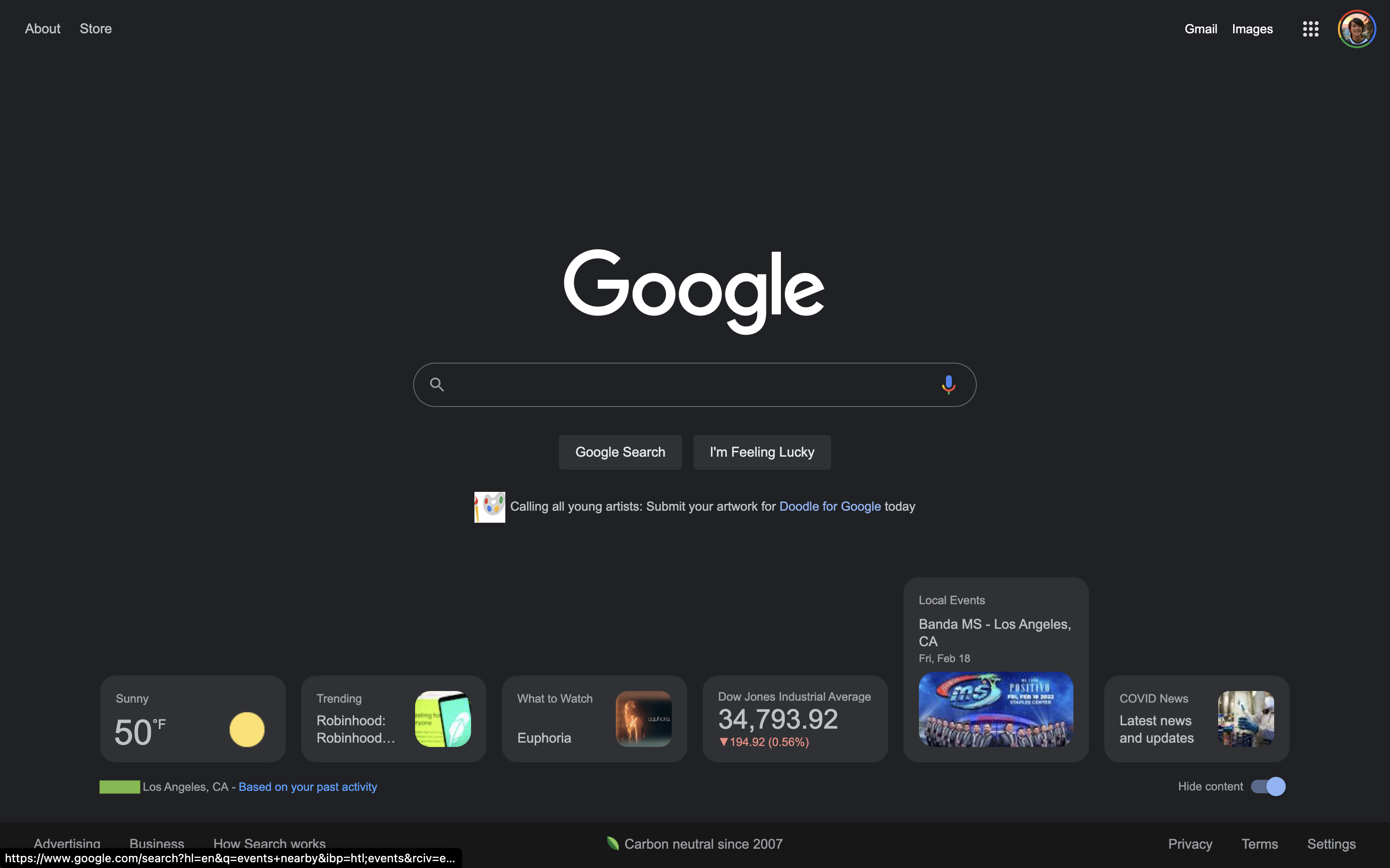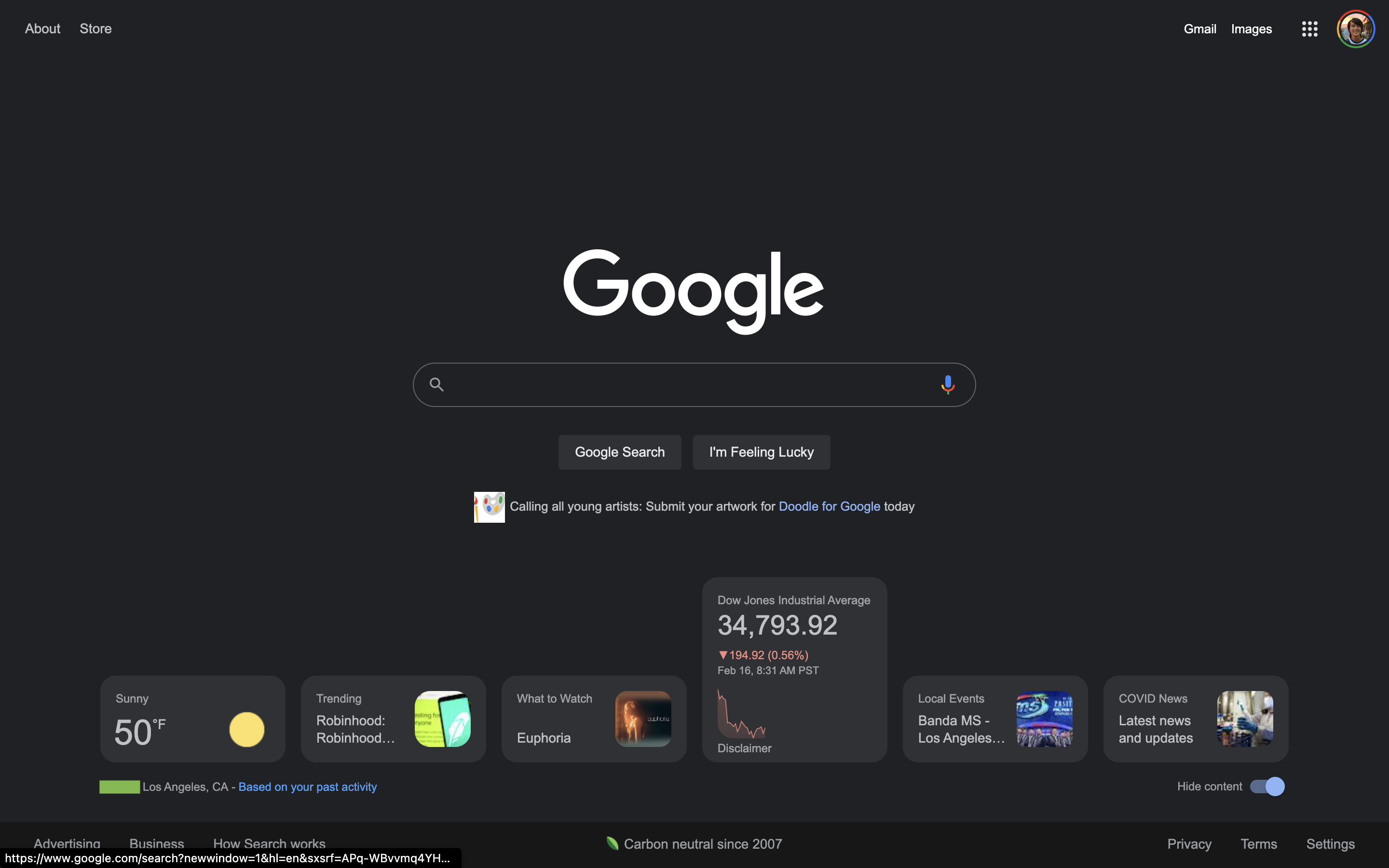 Original 2/16: These cards appear at the very bottom of google.com. There’s a “Hide content” toggle in the bottom-right corner, while Google notes your zip code/city and explains that the information offered is “Based on your past activity.” When the window is fully expanded, six cards are offered and they all expand on hover: