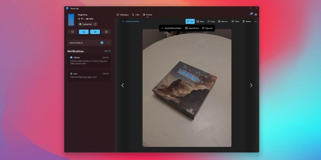 In a new update, Window’s Phone Link app adds to the photos feature by enabling text copying from images. In any image with visible text, Phone Link will be able to recognize lettering and pull it into your clipboard so you can send it or save it for later.