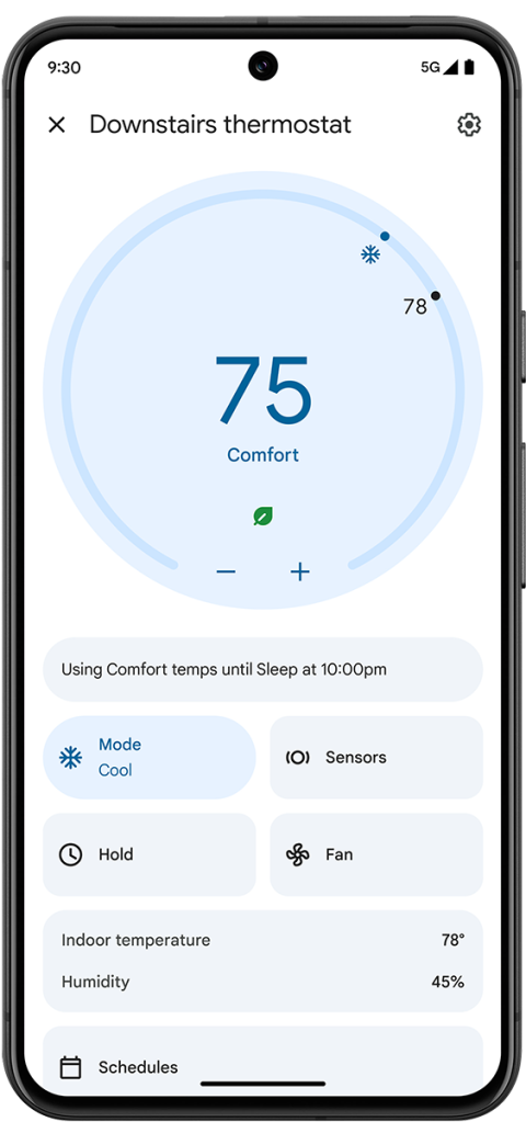 Other Matter apps, such as Apple’s Home app and Samsung SmartThings, can pair to the new Nest Learning Thermostat for basic controls. You can’t use those other apps for things such as learning schedules, pairing to temperature sensors, and more of the advanced features, but you’ll get basic controls such as temperature settings.