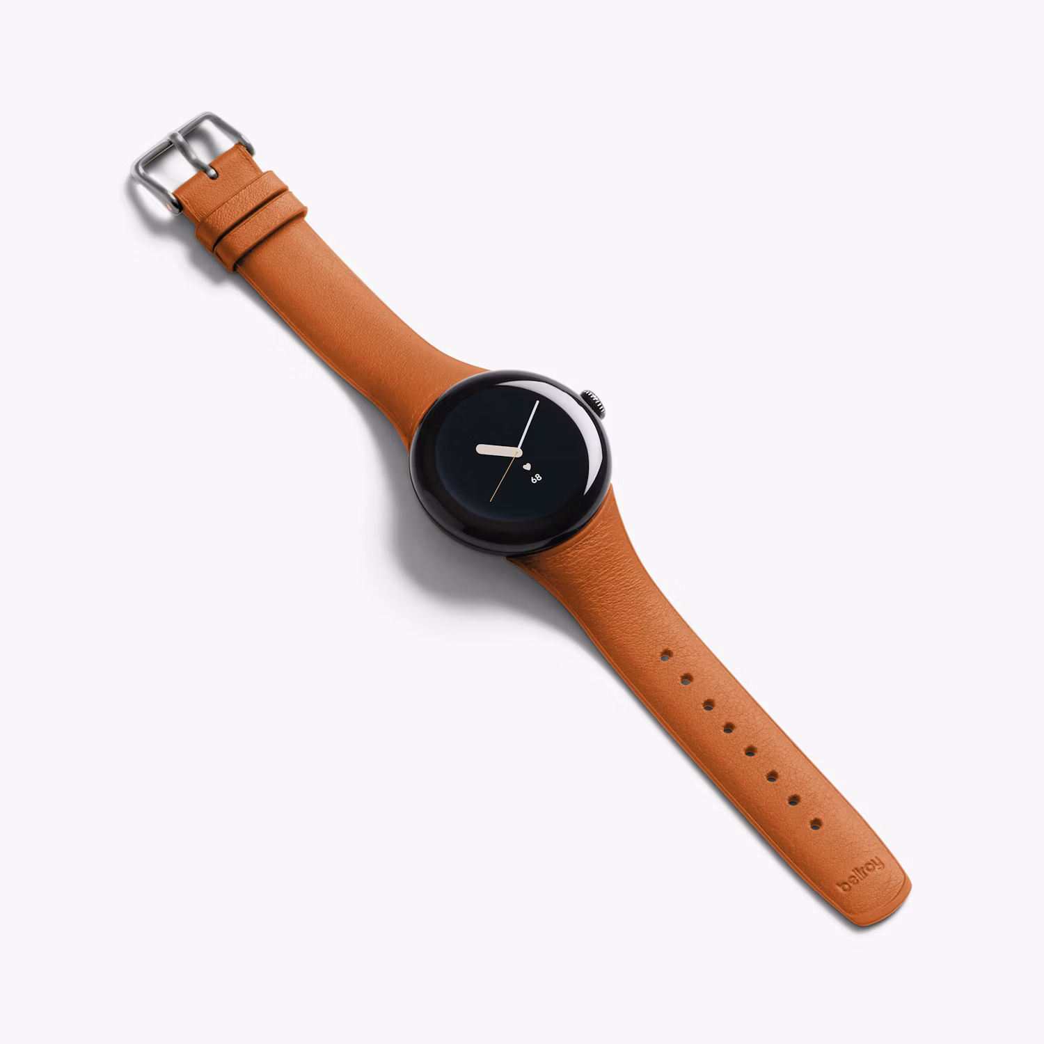 Bellroy’s Pixel Watch Strap is $69 in Terracotta (light brown) and Black. In the US, “this item is expected to ship within 4 weeks.” It’s not yet available at the Google Store or other retailers.