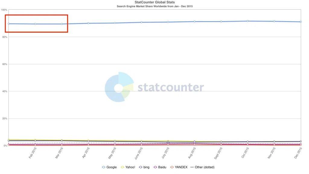 As first spotted by SearchEngineLand, Google has dropped below 90% share in the worldwide search engine market over the past three months, marking a clear trend. The last time that Google’s share was under 90% for three months was in early 2015. The data is provided by StatCounter, which uses tracking data on millions of websites to find trends among search engines, device usage, and more. That data isn’t infallible to mistakes, as we likely saw with recent Google Pixel data, but there’s obviously a trend in this case.