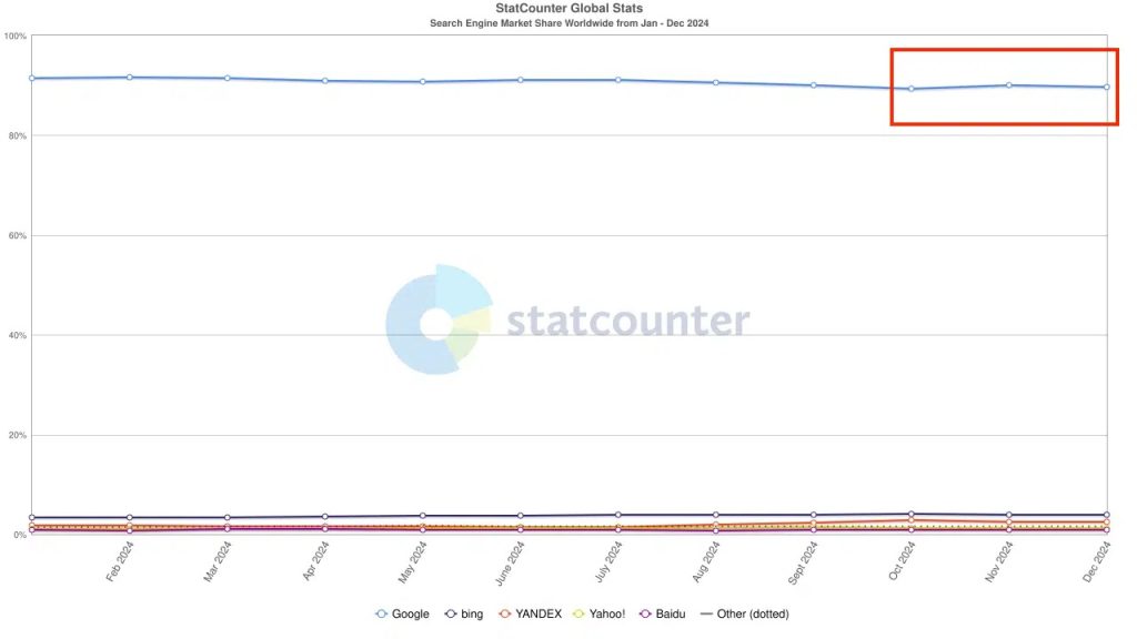 There are likely a lot of factors at play, but one highly likely reason is increased competition. The generative AI boom has led to new search offerings such as Perplexity and even OpenAI’s ChatGPT. Privacy-conscious users may have also adopted alternate search engines. StatCounter doesn’t provide much insight there, beyond showing that Bing, Yahoo, and Yandex all very slightly grew (still fluctuating) while Google shrank.