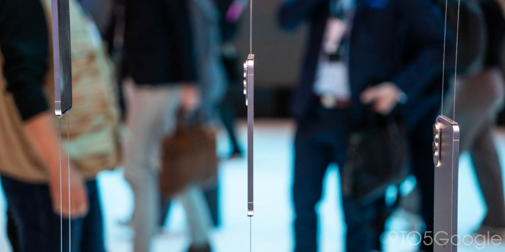 Due out much sooner is the Galaxy S25 Edge, which Samsung was also showing off at its booth. The ultra-thin Galaxy phone was strung up by wires, but surrounded with far less of a mob than it was at Unpacked, allowing a better look at the hardware with its new camera design, thin bezels around the display, and an interesting note that the “actual design” might vary. These devices didn’t appear functional, but given the rumored April launch date, it’d be pretty unexpected if Samsung changed the design very much at all.