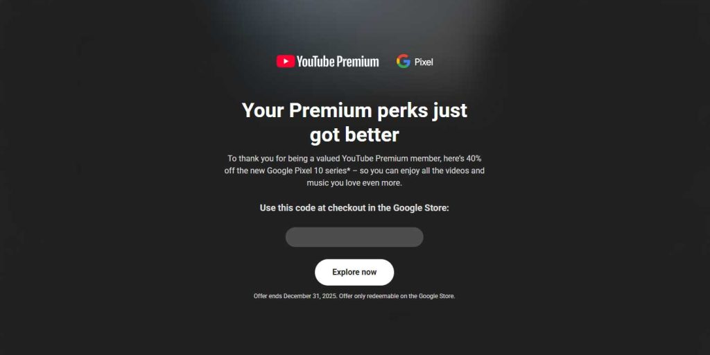 The emails YouTube is sending out contain a unique code, which means it isn’t tied to any specific account. For users who already own a Pixel 10, the discount code may be shareable during the holidays.