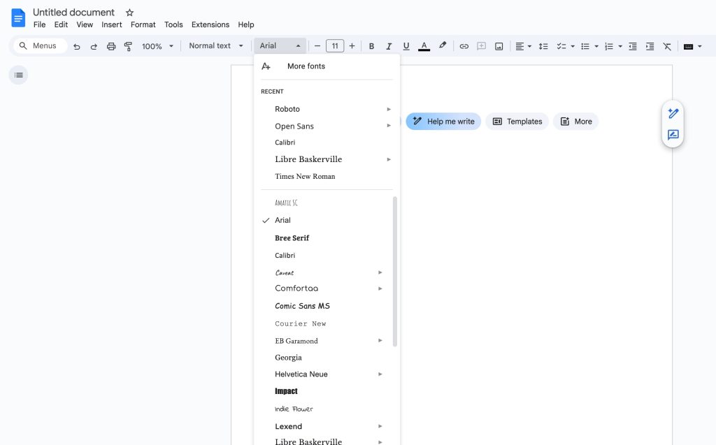 - Open the font dropdown in the toolbar