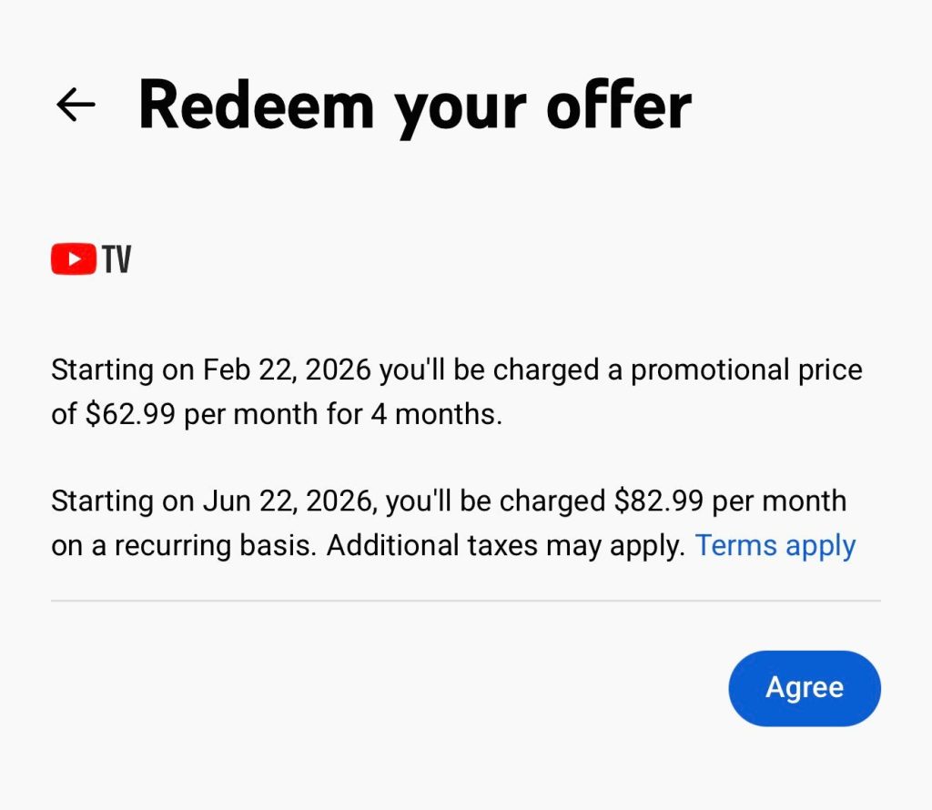 A number of YouTube TV subscribers on Reddit and Twitter/X report that an offer has appeared on their account with a discount of $20 per month for their next four months of service. The offer, which a number of users have been able to redeem, appears in YouTube TV account settings with no notice.