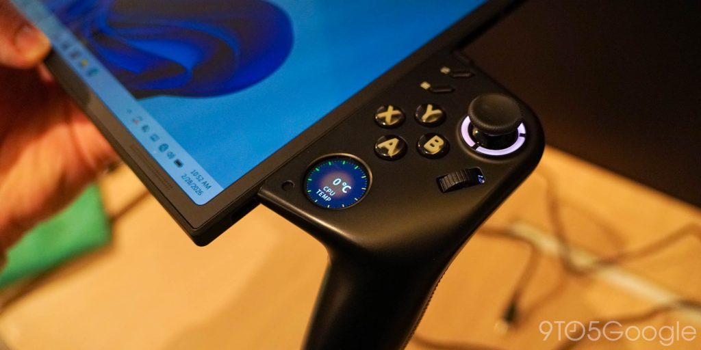 The controllers are similar to what you get on Nintendo Switch 2, with the ability to detach the controllers fairly easily, or attach them to a separate piece which turns the pair into a wireless gamepad. The display, meanwhile, can also be attached to a magnetic keyboard/trackpad/kickstand setup that effectively acts like a tabletop laptop setup. There’s even a little screen in the controller to show your CPU temps and other data.