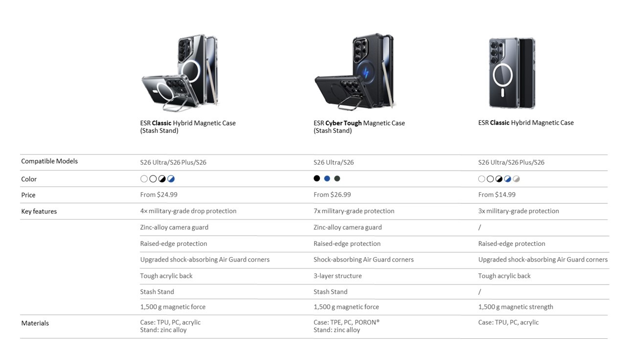 ESR has a whole collection of magnetic accessories available for the new Galaxy S26 series, including a batch of cases.