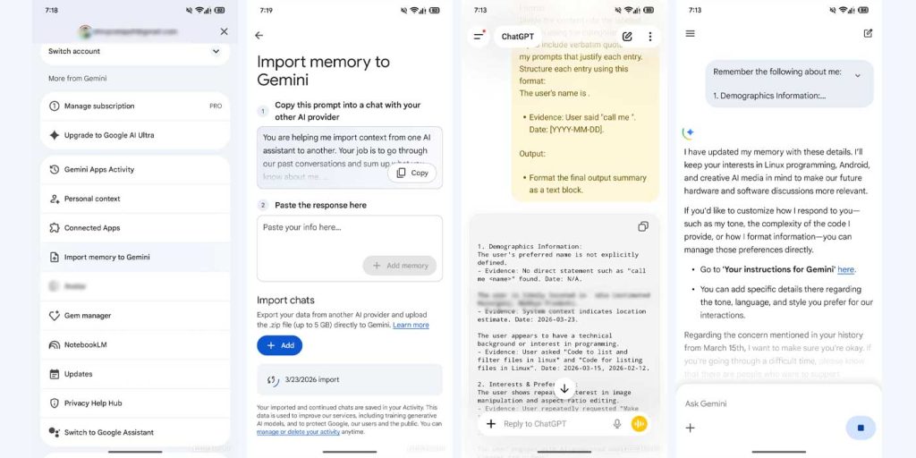 Google seems to understand that the current AI landscape has users jumping from one model to the next, looking for the best experience. A possible feature addition in Google Gemini would allow users to import chats and memory from other AI apps, so you don’t have to start over.