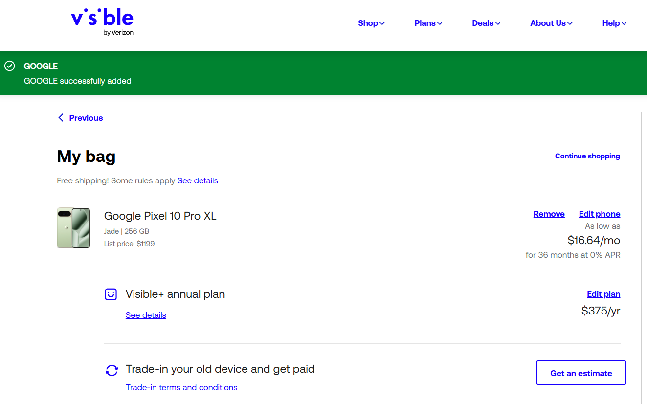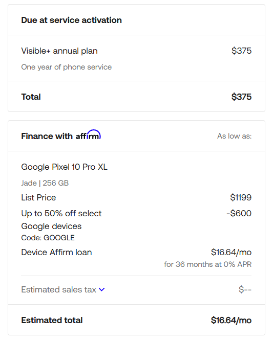 You don’t need to do anything special to take advantage of this offer if you’re already a Visible customer either – as long as you’re on the Visible+ Pro plan ($45/month), you can simply place an order for the Pixel 10a and you’ll get this deal.