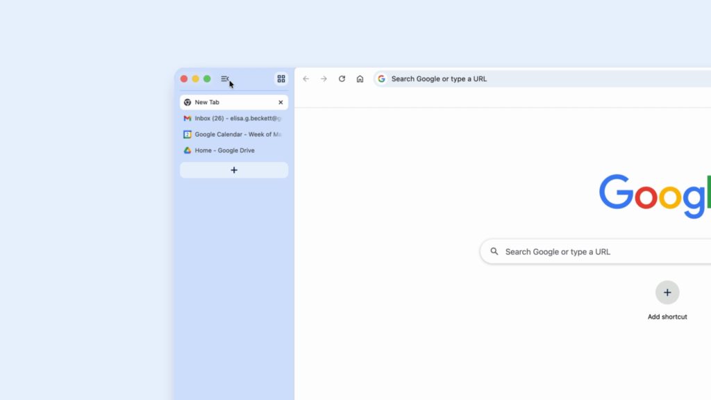 Vertical tabs are an alternative to the horizontal tab strip that has been in place since Chrome launched. You get a list of open tabs on the left side of the screen. This lets you read full page titles “even when your tab count hits double digits,” while Tab Groups are easier to organize this way.