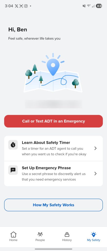 This feature uses your phone to create an always-listening alert. You can set up a secret phrase in the app and, when active, the phone will listen for that phrase even if the ADT app is not actively open. If you say the phrase, ADT’s monitoring team steps in and can contact emergency services for you.