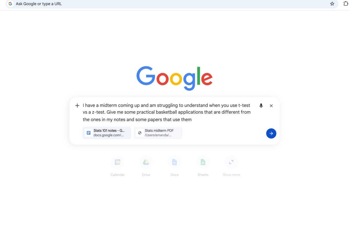 On the desktop New Tab Page (NTP), tapping the “AI Mode” button now opens an inline prompt box instead of just taking you to the website. When you click on links in AI Mode, the conversation will shrink into a new side panel, so you can browse and ask follow-up questions about the open page or YouTube video.
