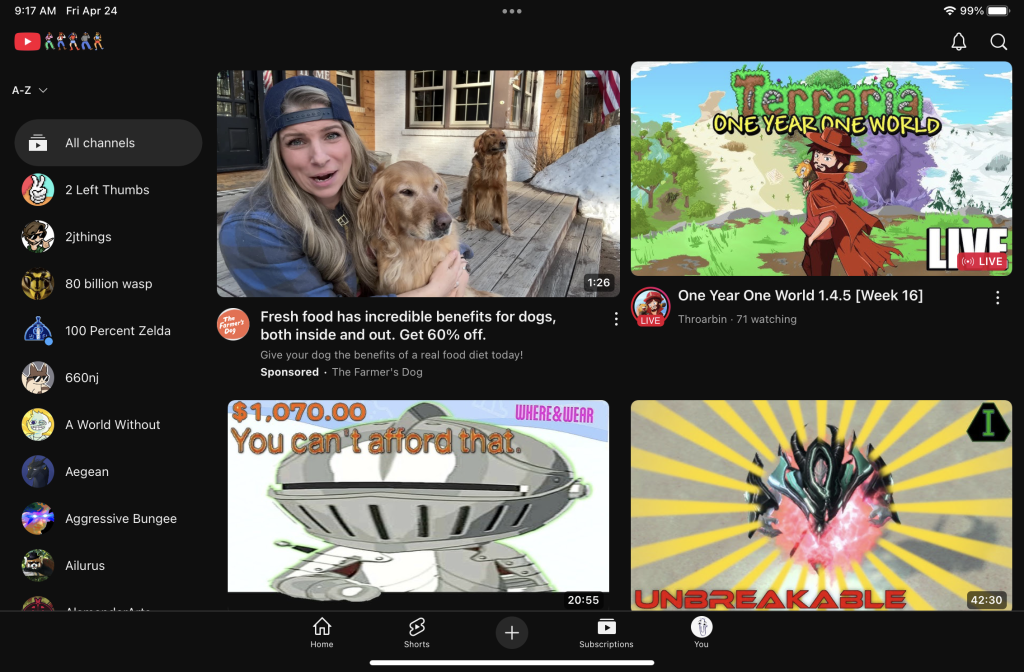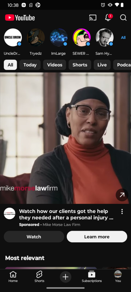 Beyond this, though, a new change appears to be the placement of ads in the YouTube subscriptions feed.