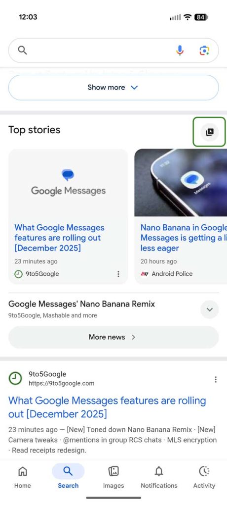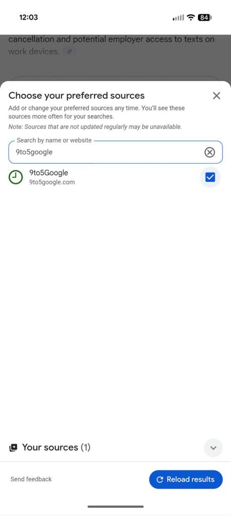With the right sources set, the Top Stories carousel should prioritize news cards from your favorite websites first.